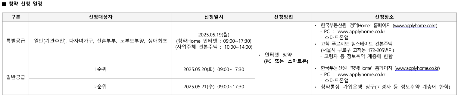 • 특별공급 청약접수: 2025년 5월 19일