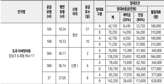 도곡 더 써밋타워 청년안심주택 개요