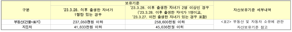 2023.3.28. 이후 출생 자녀 수에 따라 자산 기준 완화
