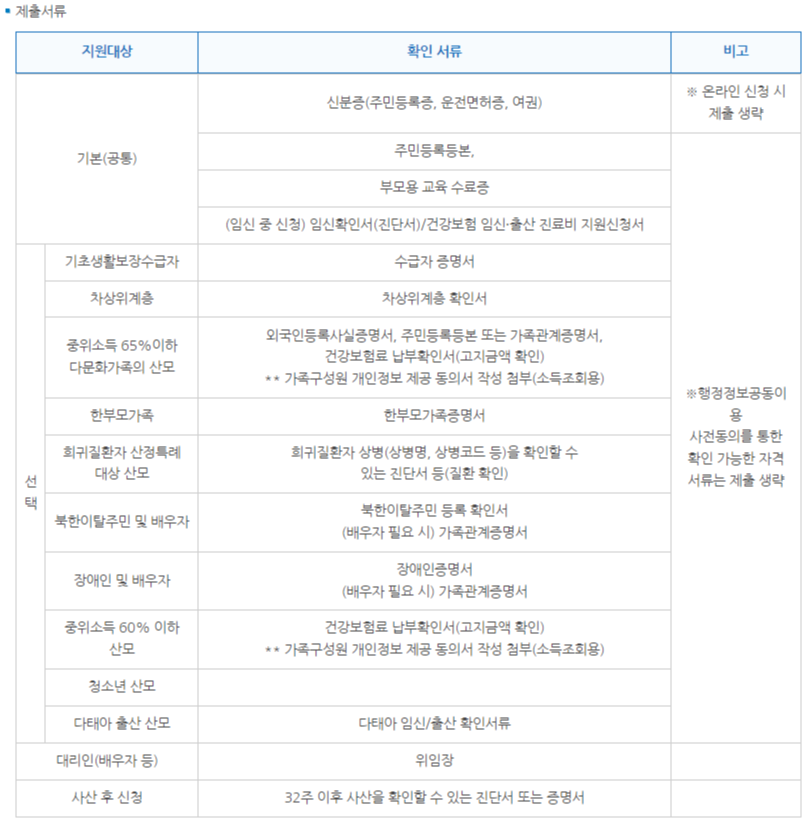 | 산후조리원 이용 영수증 | 조리원 또는 서비스 업체에서 발급 |