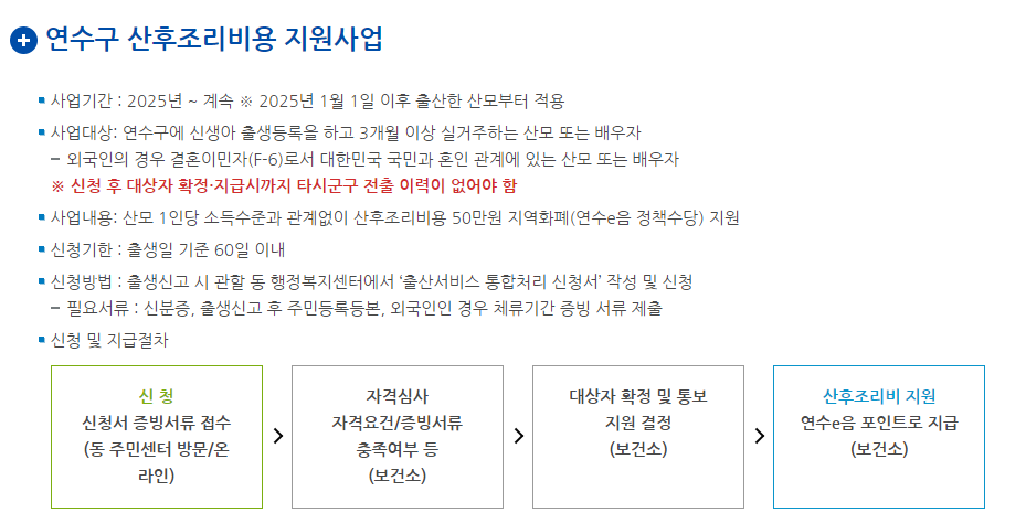 연수구 산후조리비용 지원 자격조건 혜택 신청방법