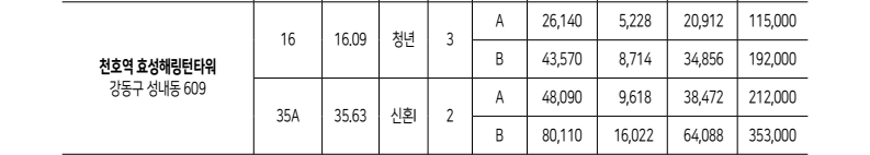 천호역 효성해링턴 청년 계층 신청자격