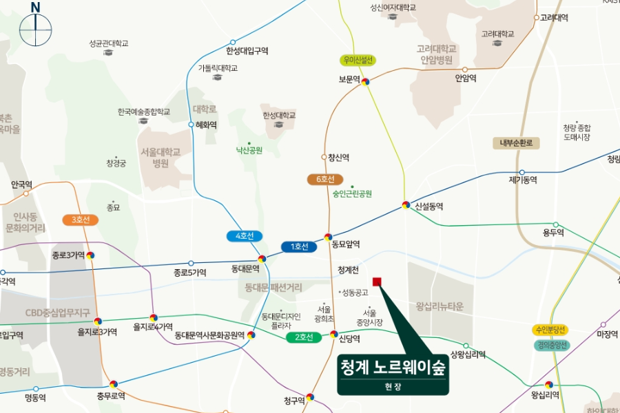 청계 노르웨이숲은 서울 중심에서 보기 드문 신축 아파트로, 희소성과 비규제 입지라는 전략적 장점을 갖고 있습니다. 특히 청계천 조망과 트리플 역세권(신당역, 청구역, 왕십리 인접 예정 GTX-C)의 입지 경쟁력은 향후 시세 상승 여력을 기대하게 합니다.
