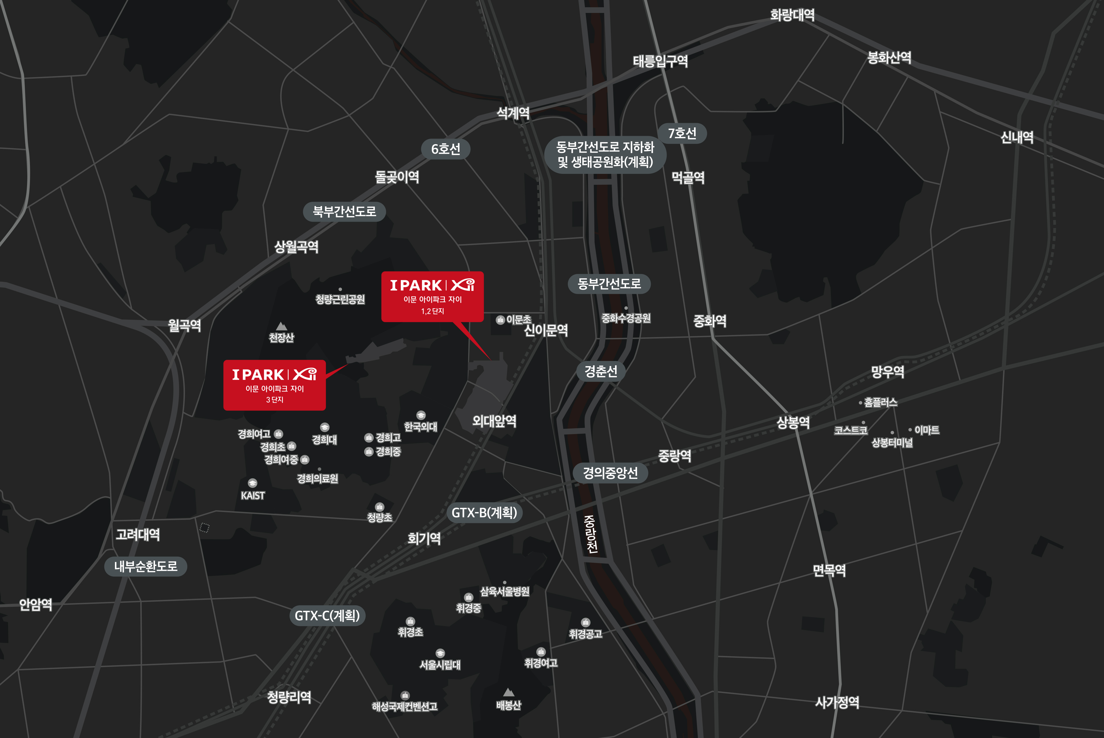 또한 인근에 위치한 경희대학교, 한국외국어대학교, 서울시립대학교 등의 명문 대학이 가까워 교육 분위기도 뛰어나고, 학원 밀집지역인 회기, 청량리 인근 학원가 이용도 편리합니다. 자녀 교육에 민감한 실수요자에게 매력적인 포인트입니다.