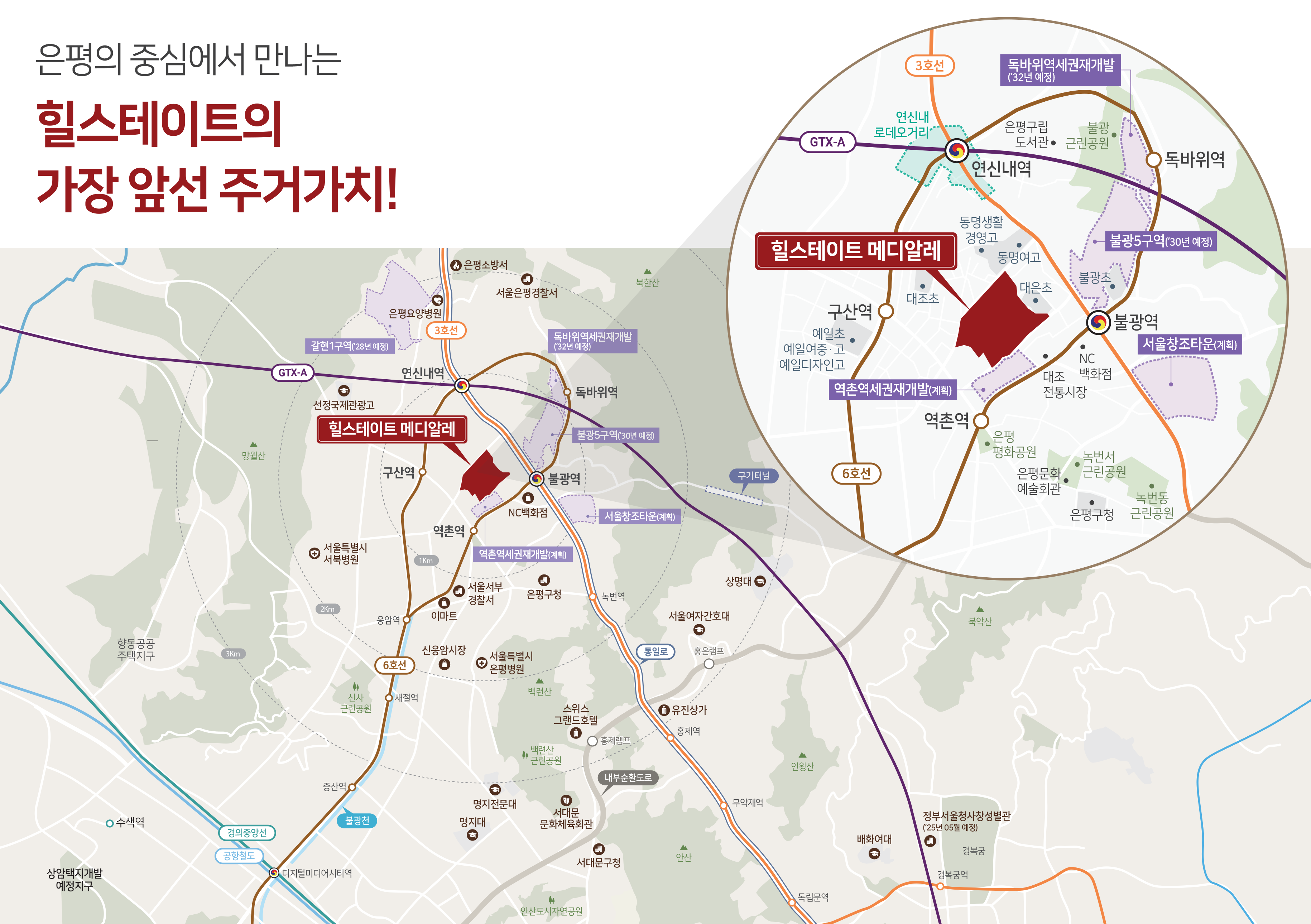 힐스테이트 메디알레는 연신내역 GTX-A 수혜, 서울창조타운 개발 등 다양한 호재로 가치 상승이 기대됩니다.