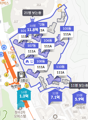 - 힐스테이트 녹번 전용 84㎡ 11억 수준