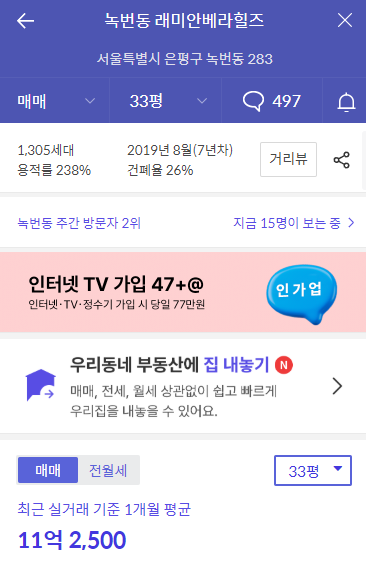 - 래미안 베라힐즈 (연신내) 전용 84㎡ 11억 ~ 12억원