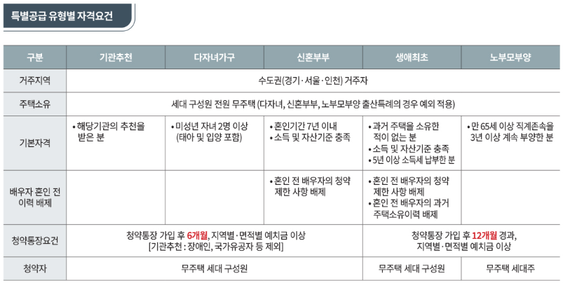 특별공급 유형별 상세 자격 및 기준