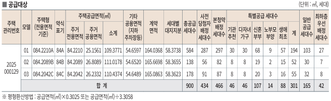 | 세대수 | 총 900세대 (전용 84㎡ A·B·C) |