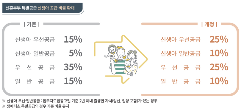 기존 신생아 우선공급 특별공급 15%에서 25%로 확대되고