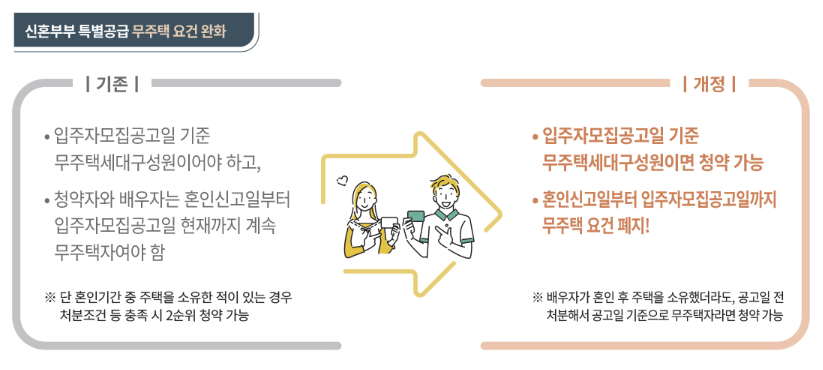 기존 혼인신고일부터 입주자 모집공고일까지 계속 무주택이어야 했지만