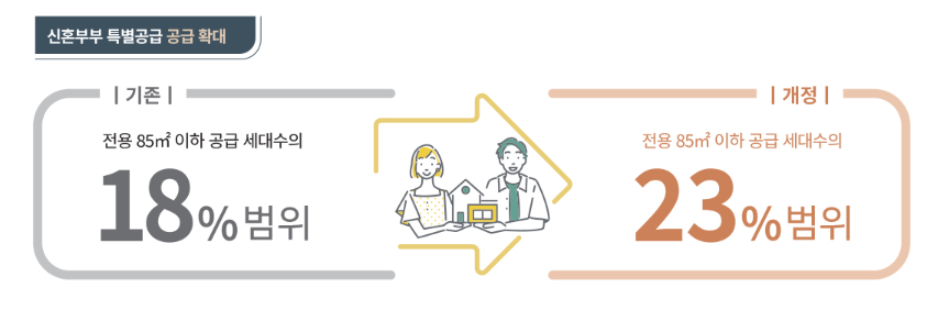 민영 주택의 경우 신혼부부 특별공급 물량을 기존 18%에서 23%로 확대되고