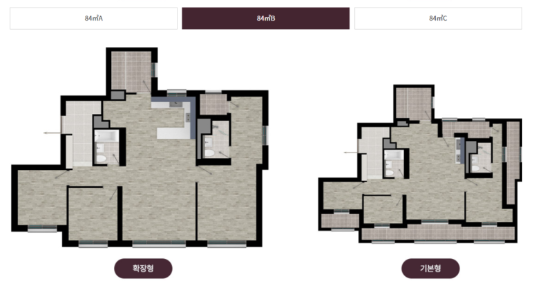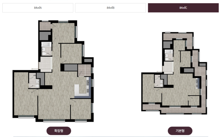 - ✅ 전용면적: 84㎡ 단일 평형, A/B/C타입 구성