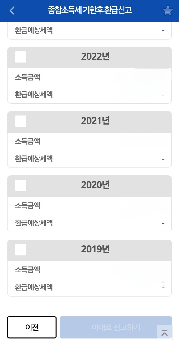 - 최대 5년 치 환급금액을 한 번으로 환급 신청가능